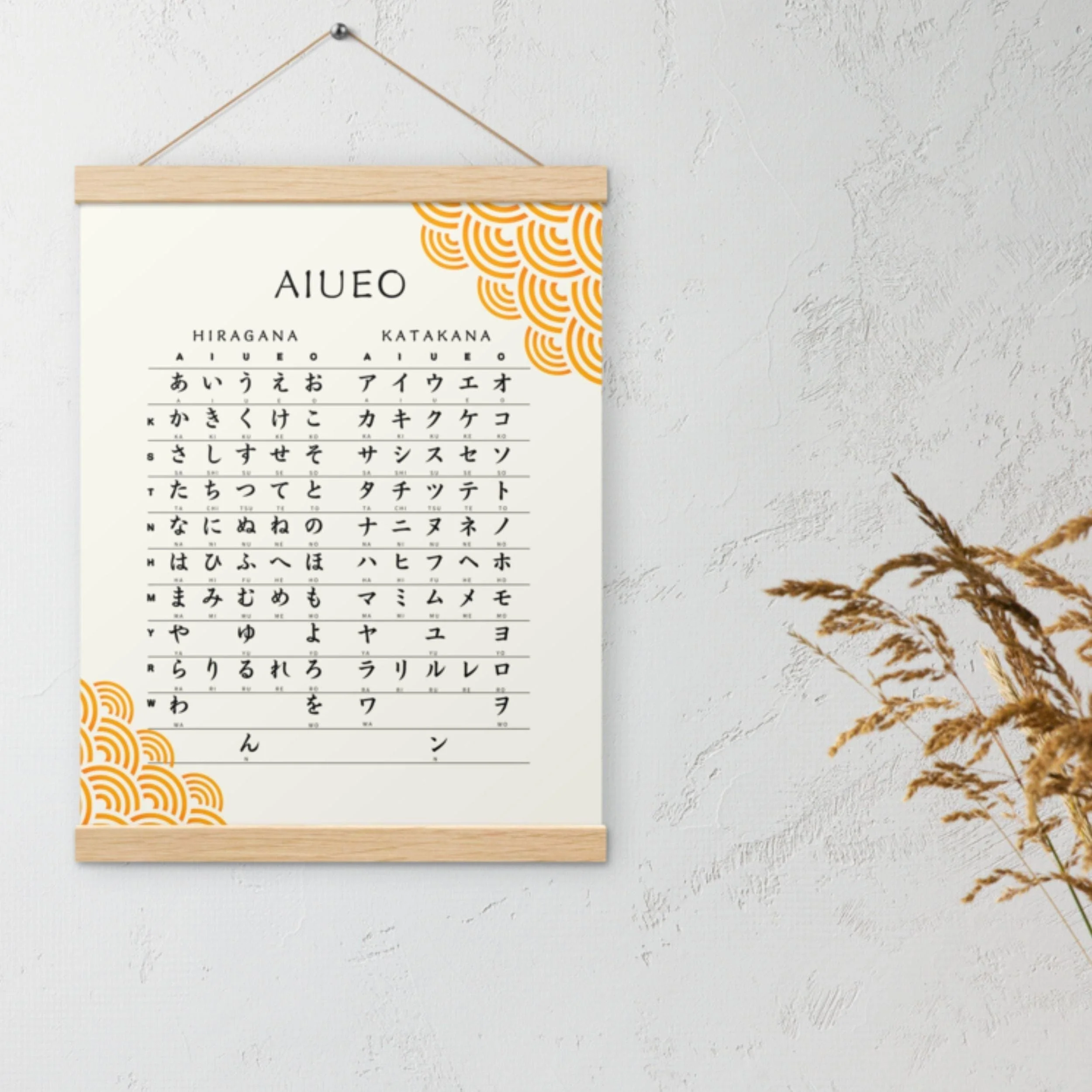 Get a Japanese Hiragana Katakana chart that serves as a comprehensive Japanese alphabet list, perfect as a beginner guide to learning the language. This hiragana and katakana table makes an excellent gift for Japanese learners, helping to reference the Japanese alphabet at your table while studying Japanese.