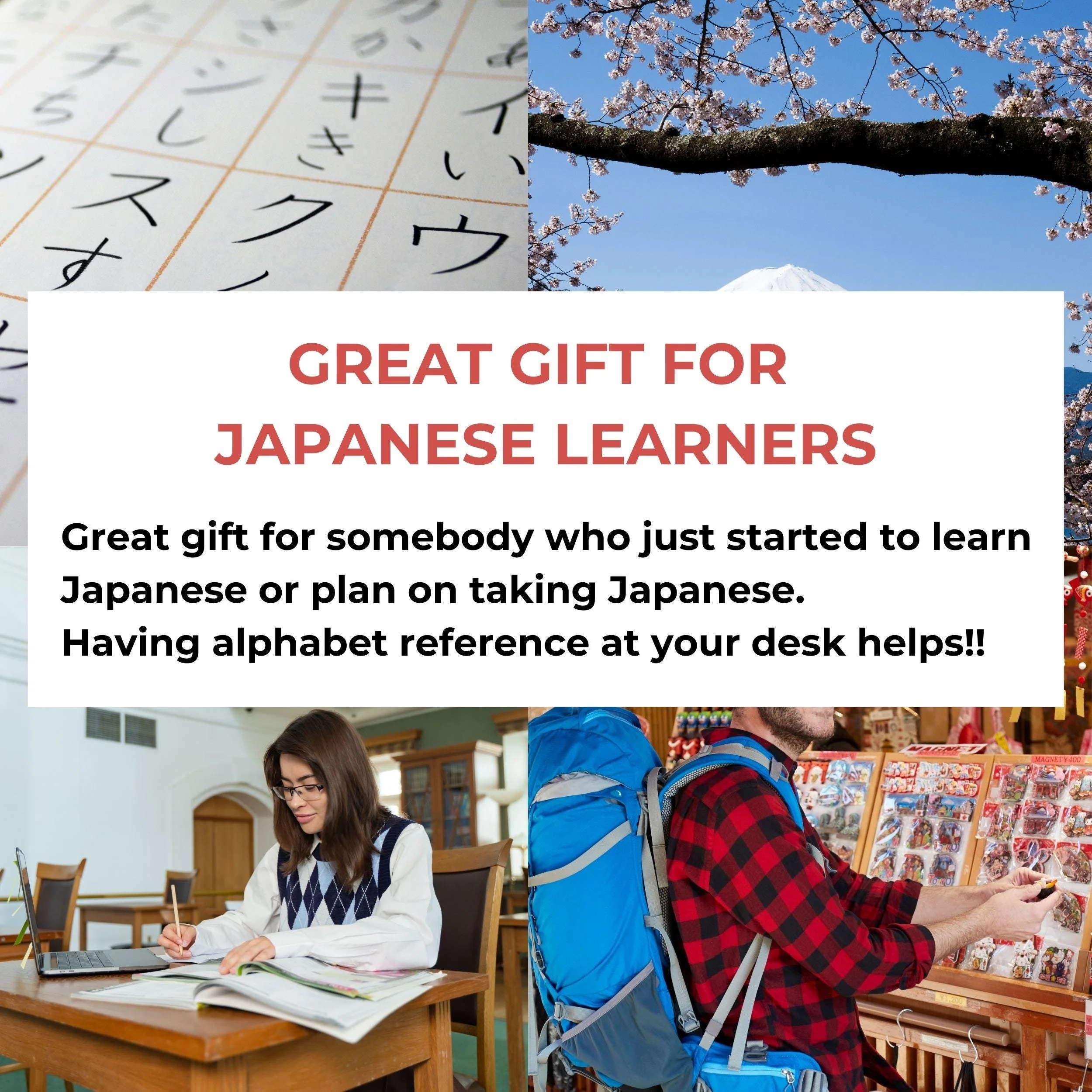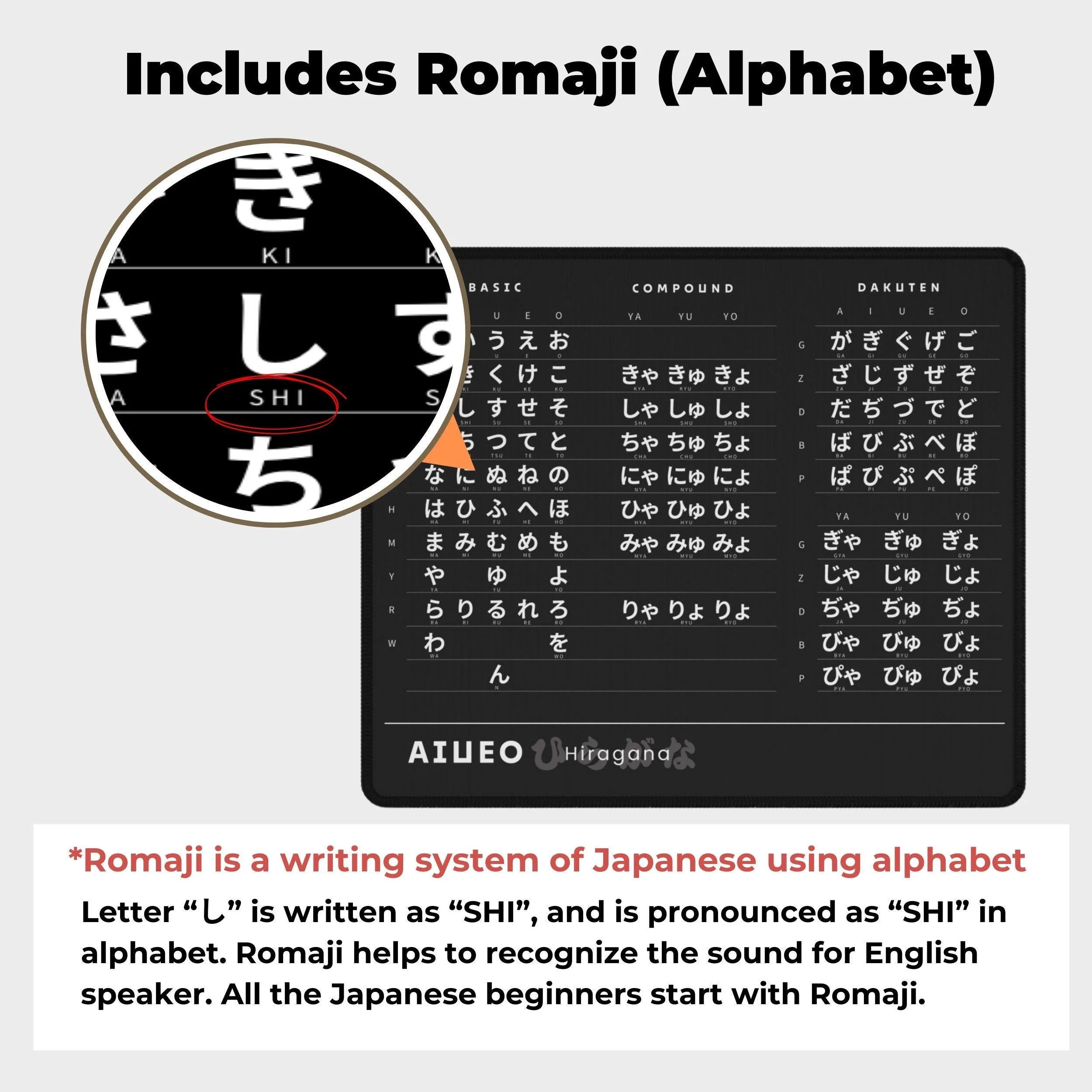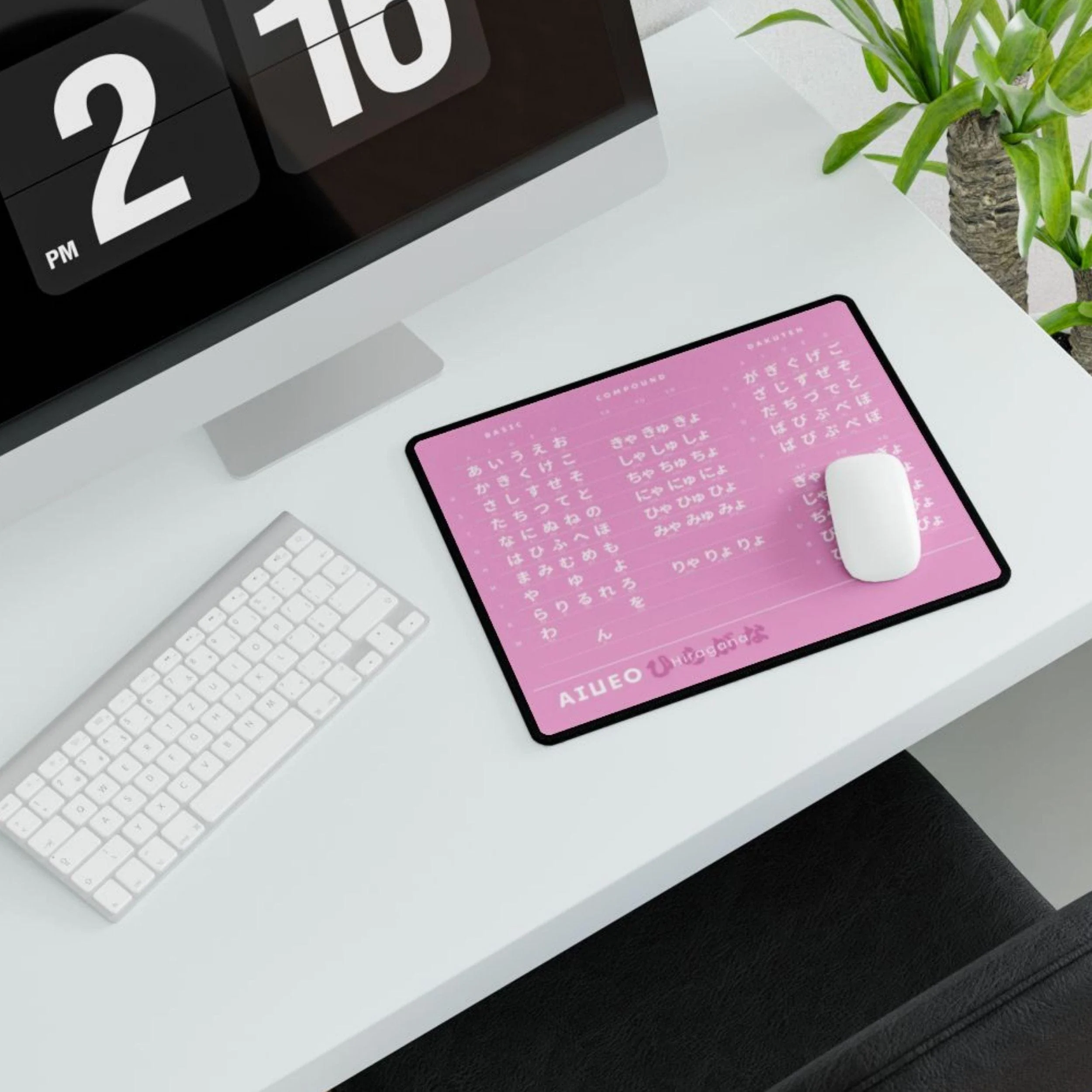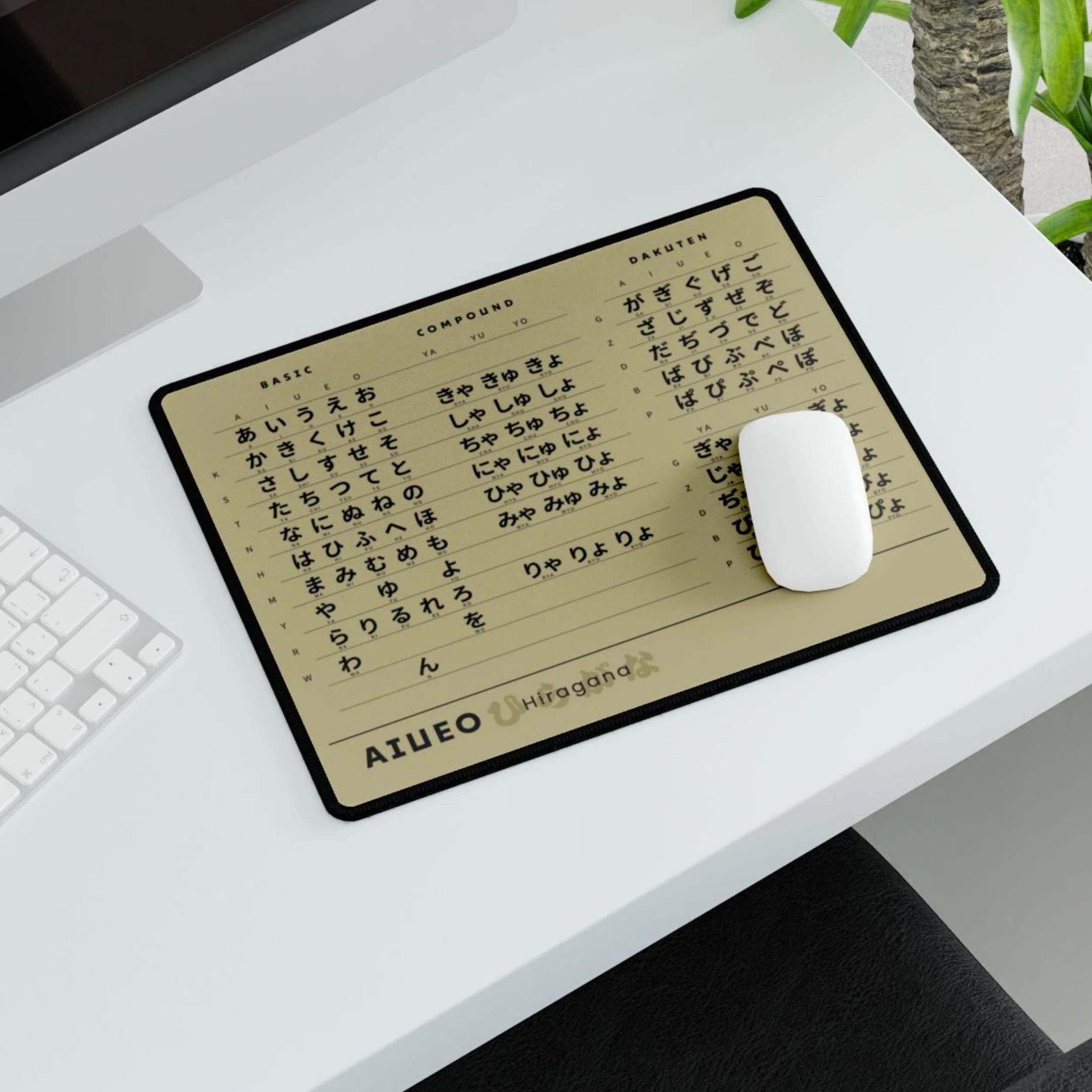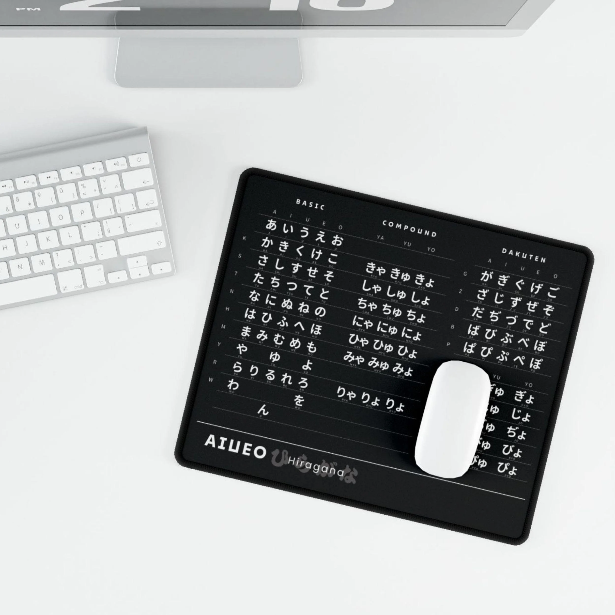 This Hiragana desk mat doubles as a Japanese mouse pad, making it an ideal study guide and gift for those learning Japanese and wanting a Hiragana list at hand. It's a practical accessory for studying Japanese, combining functionality with educational value.