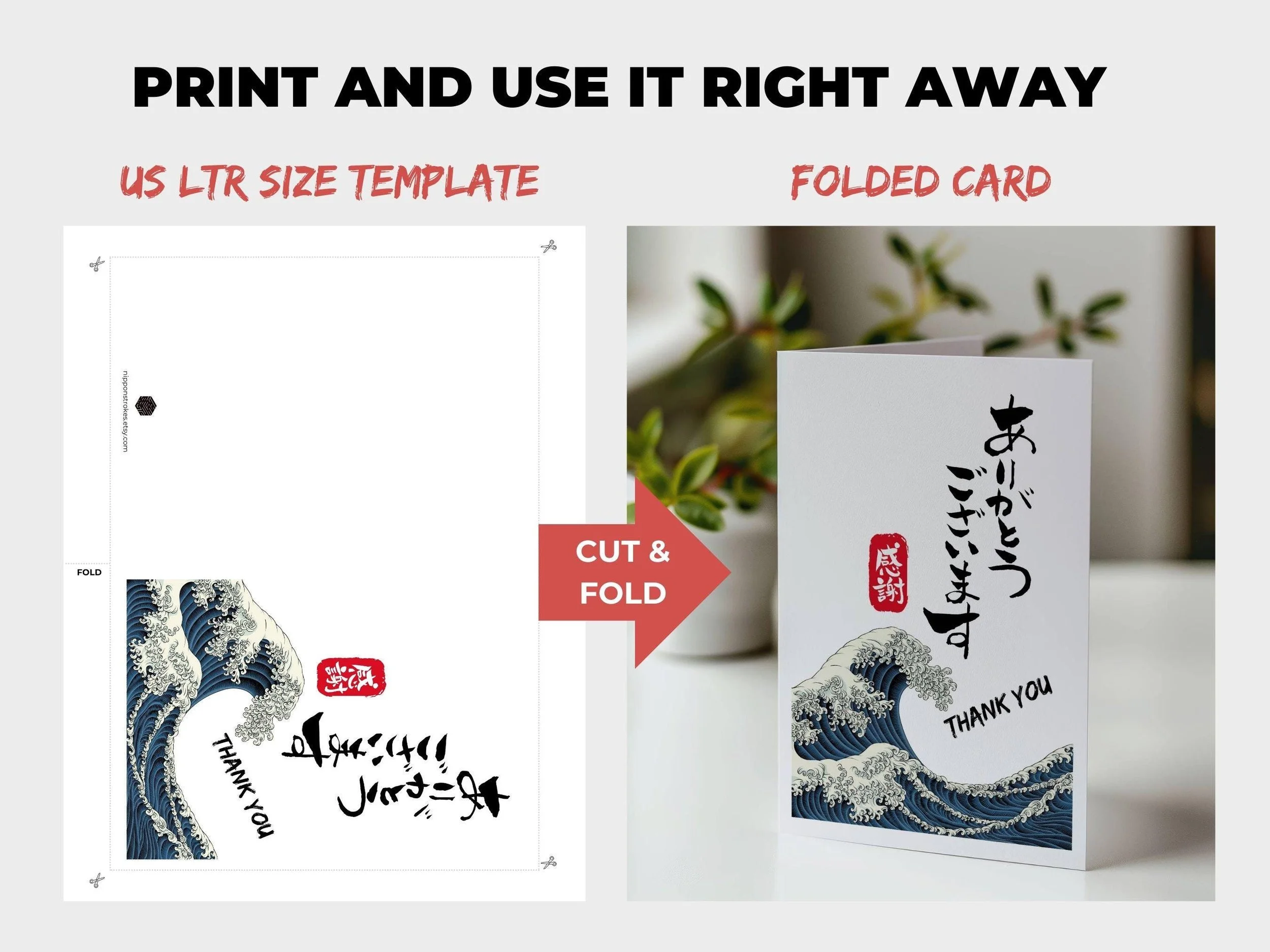 Hokusai Waves Thank You Card Japanese Calligraphy Greeting Card (Printable)