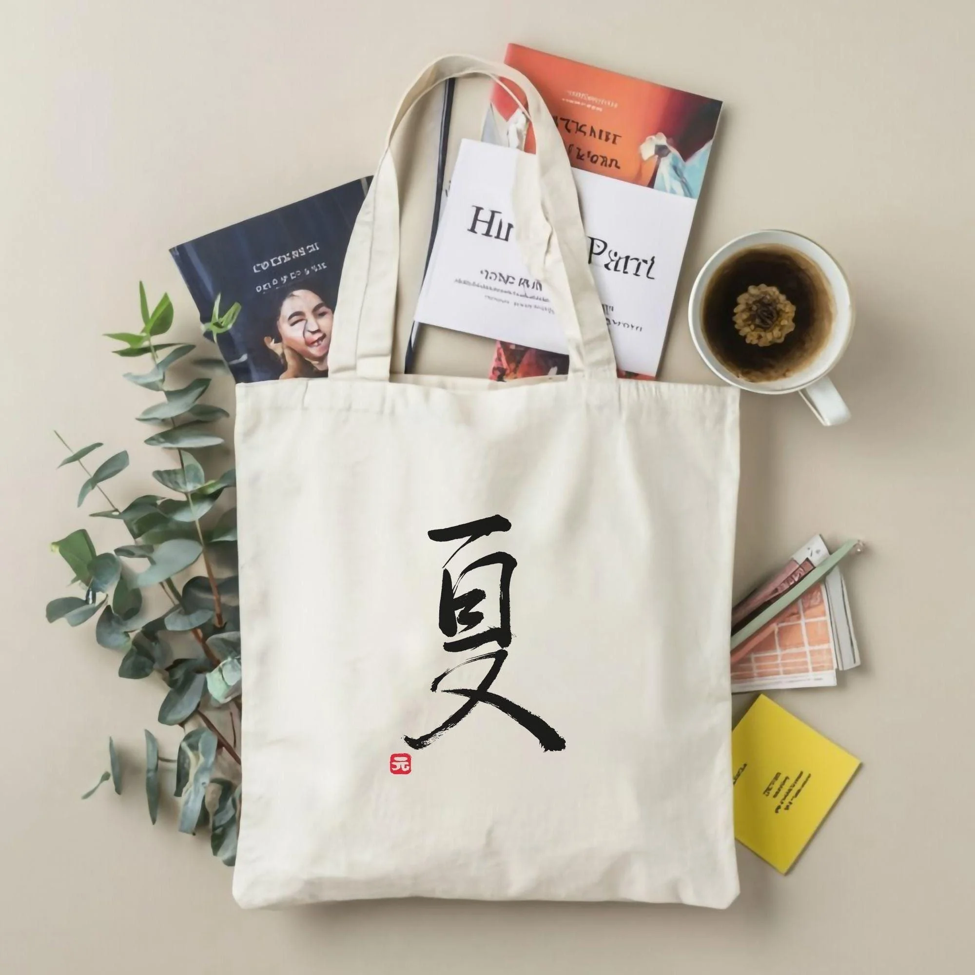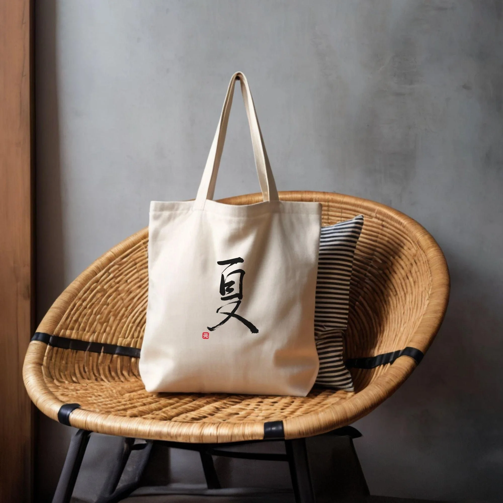 Japanese Calligraphy "Summer" Kanji Tote Bag: Japanese Art Gift