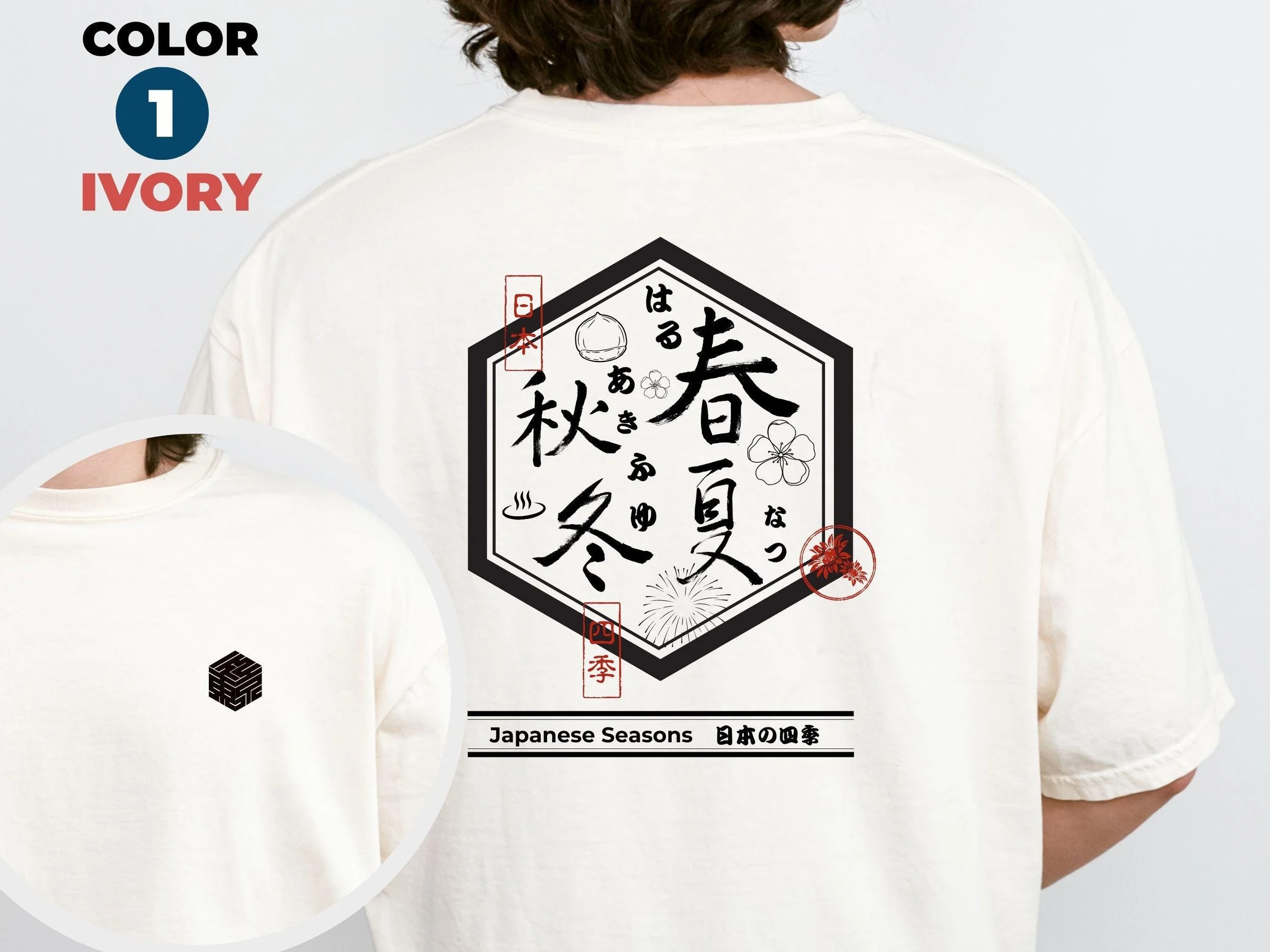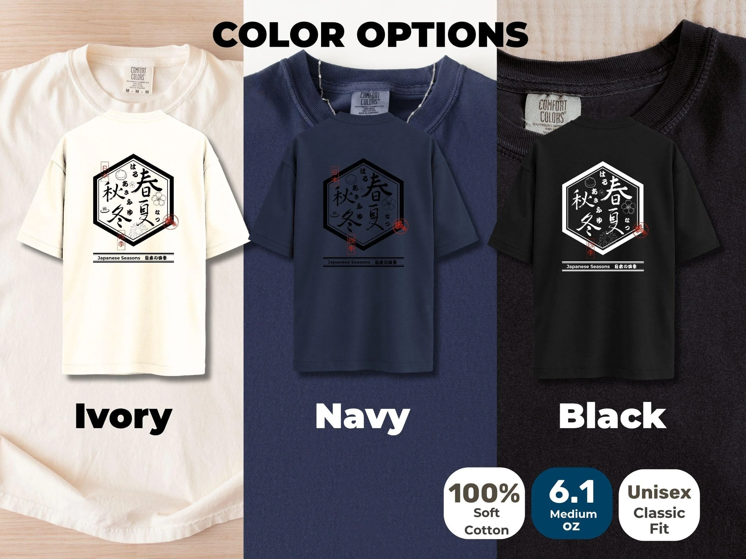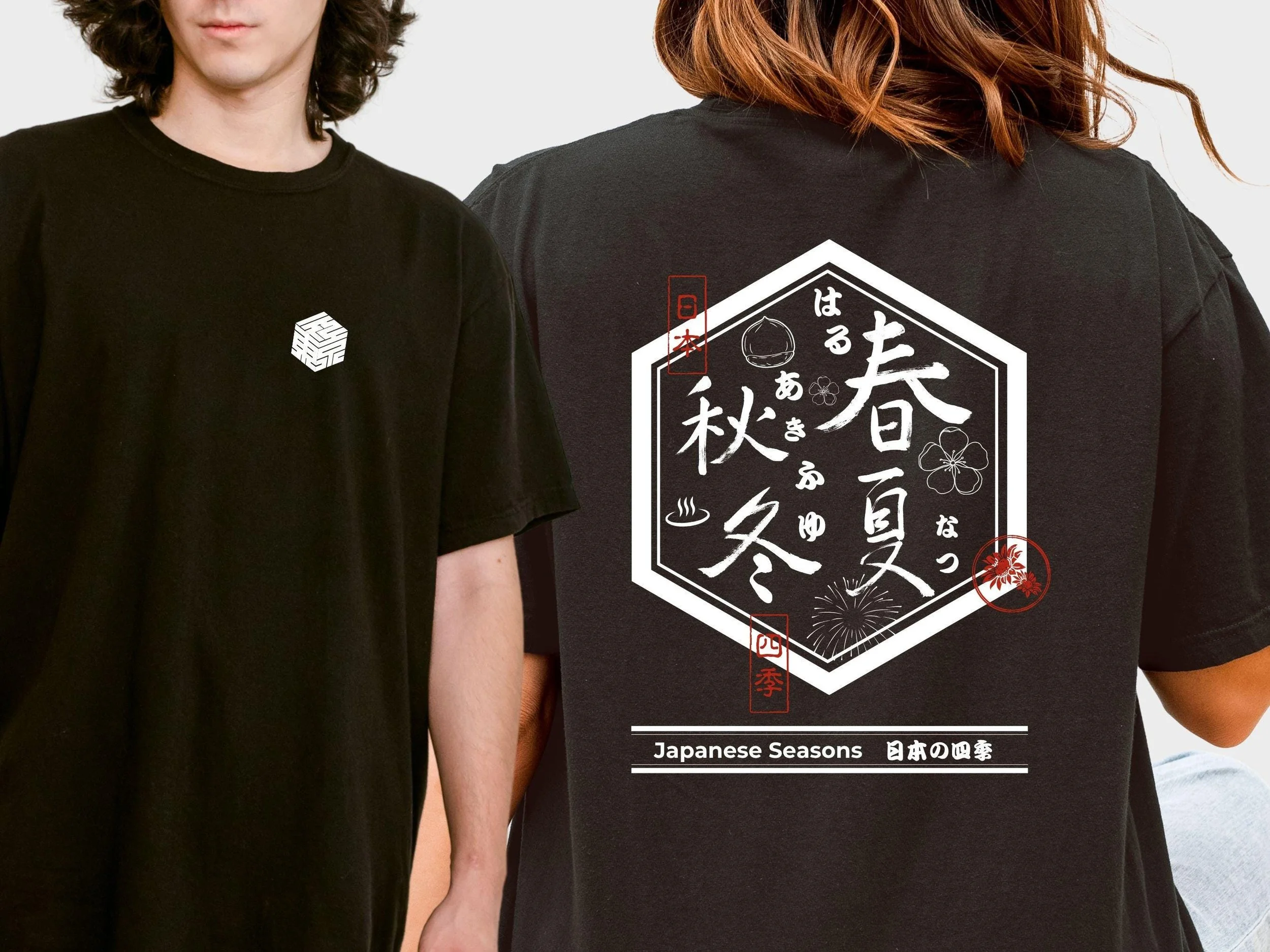 Japanese Calligraphy T-Shirt: 4 Seasons Art, Japan Travel Gift