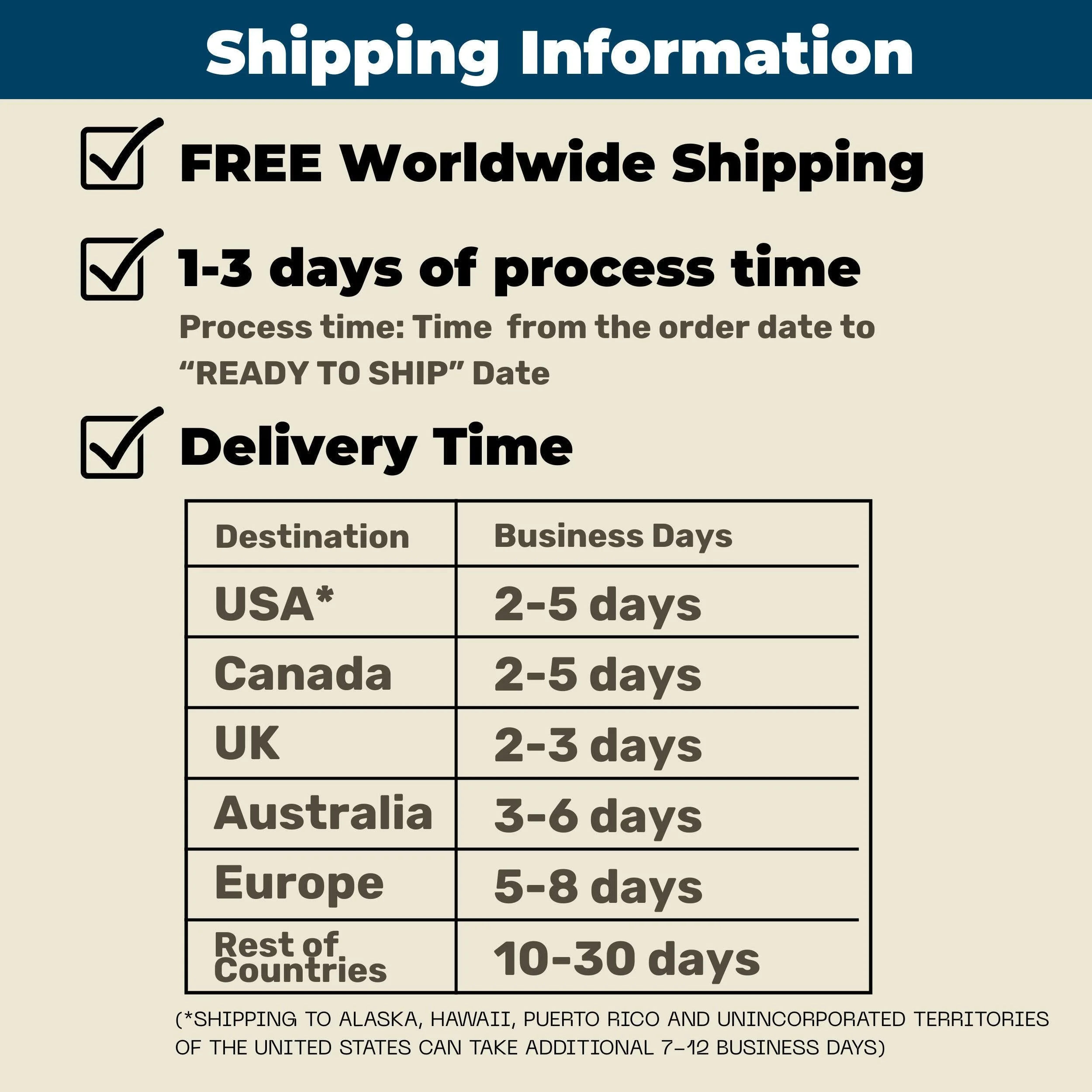 .: Ships in 5-10 days for US, 10-14 days for International