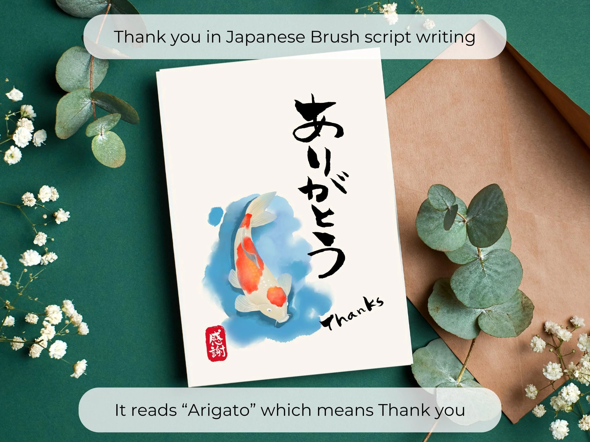 Japanese Calligraphy Thank You Card: Koi Fish Watercolor Art (PDF Downloadable Printable Card, 5x7in )