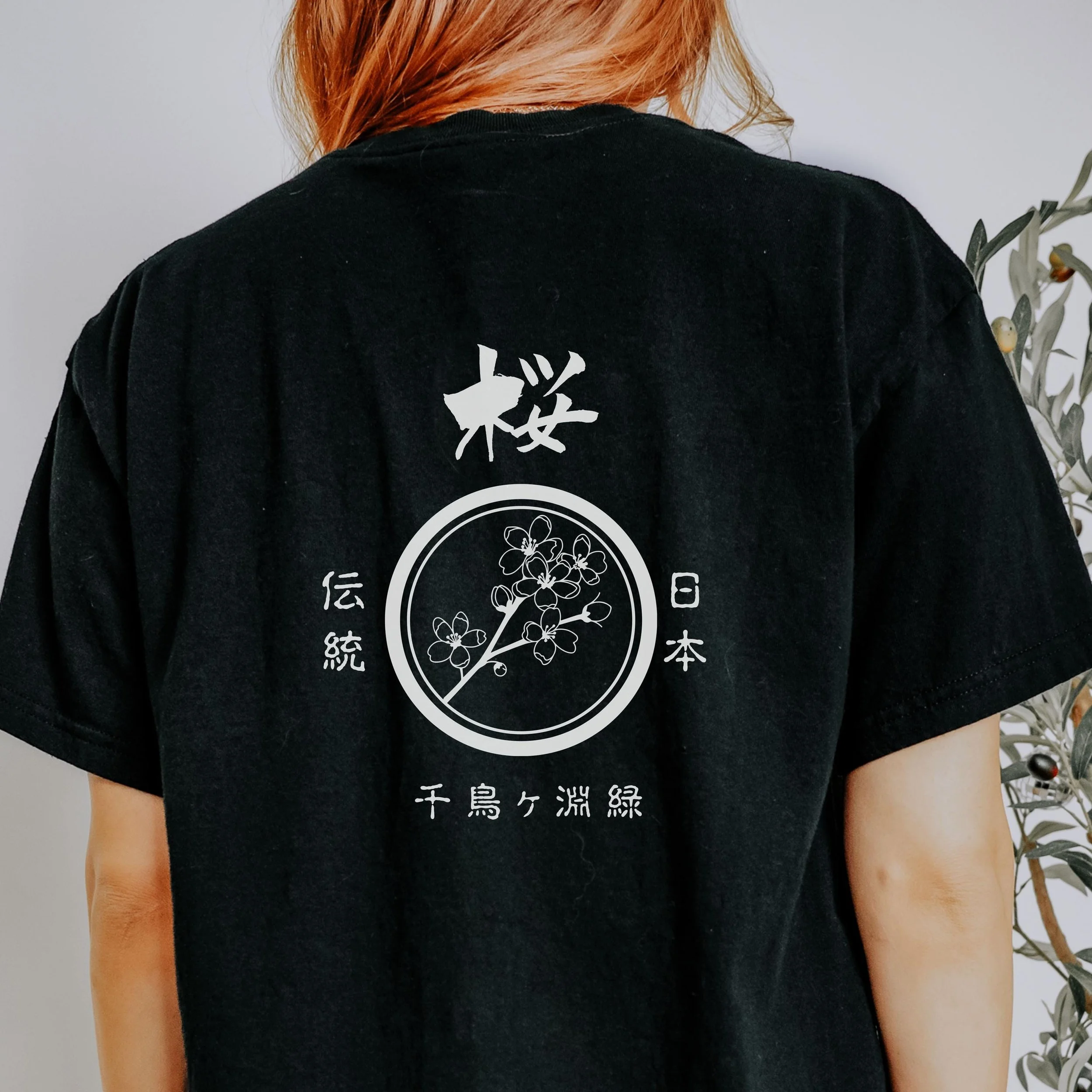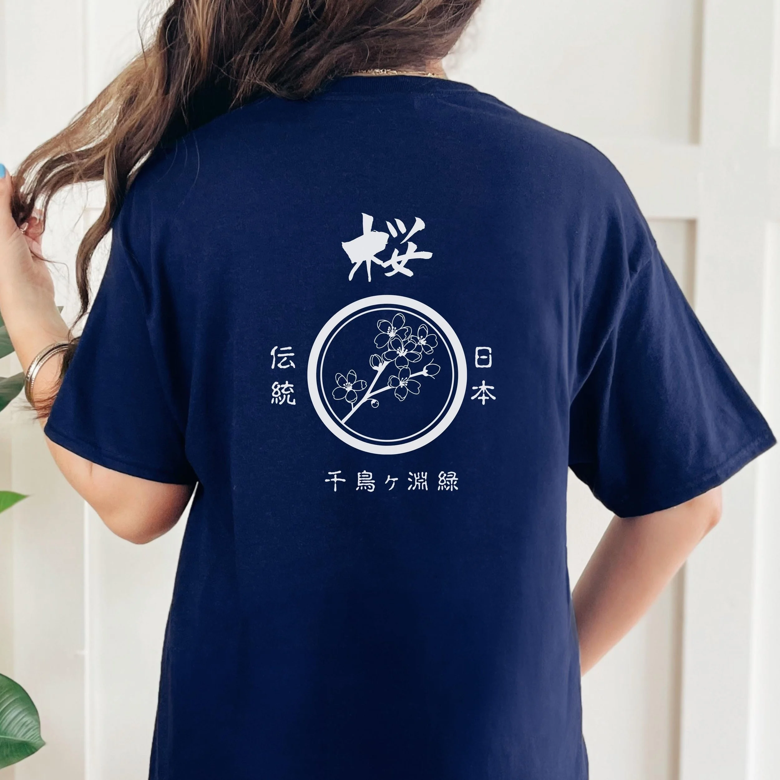 Japanese Cherry Blossom T-Shirt Sakura Tree Kanji Calligraphy Tee Gift For Japanese Culture Lover Present For Garden Lover Tshirt For Her