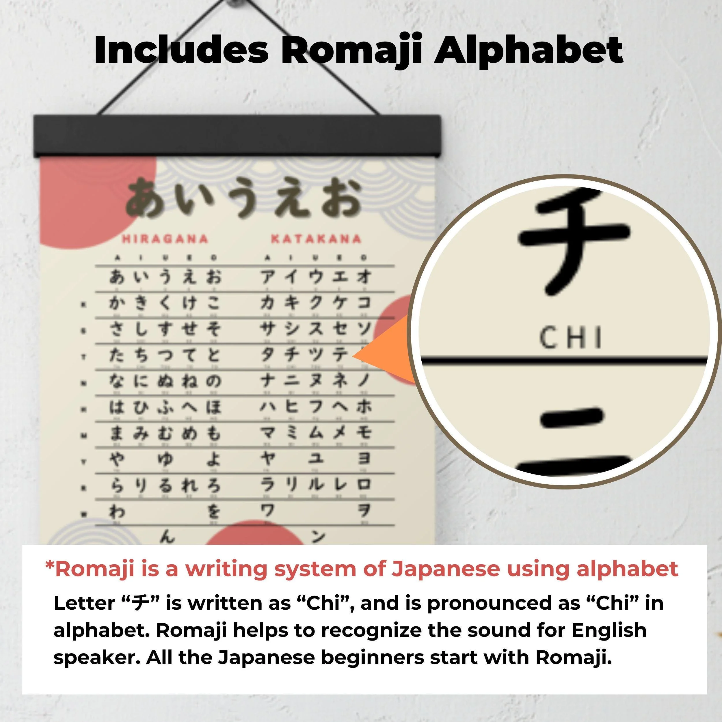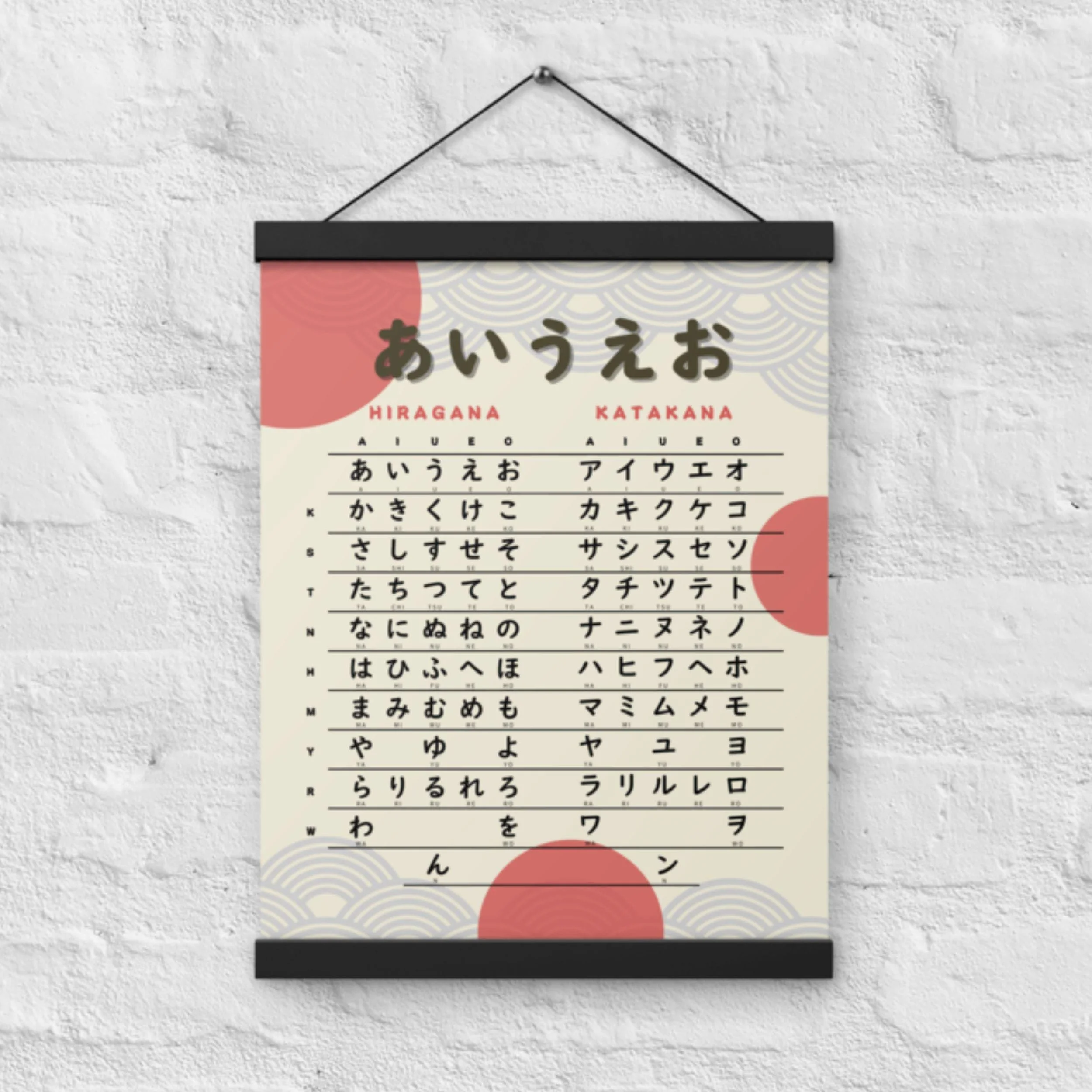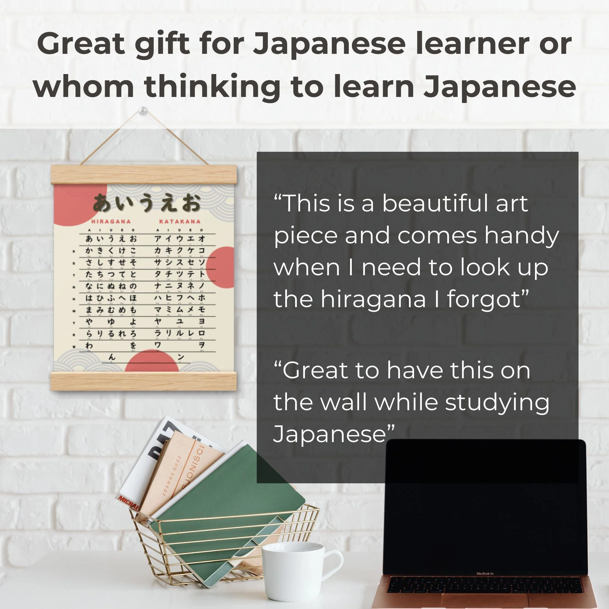 Japanese Hiragana and Katakana Chart Poster Frame For Japan language study Japanese alphabet table Wall Poster Gift for Japanese learner
