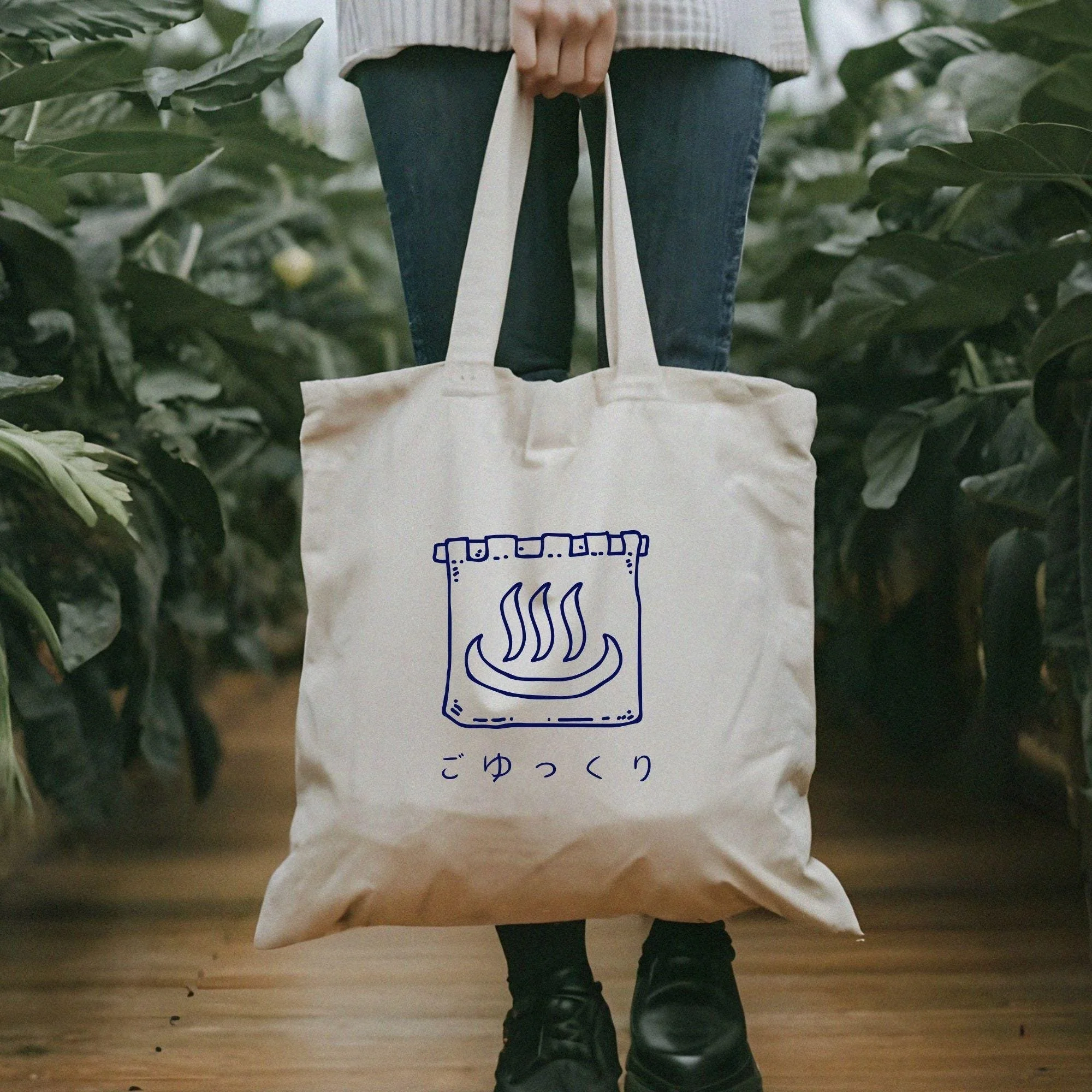 Japanese Hot Spring Sign Canvas Tote Bag: Japan Lover Gift
