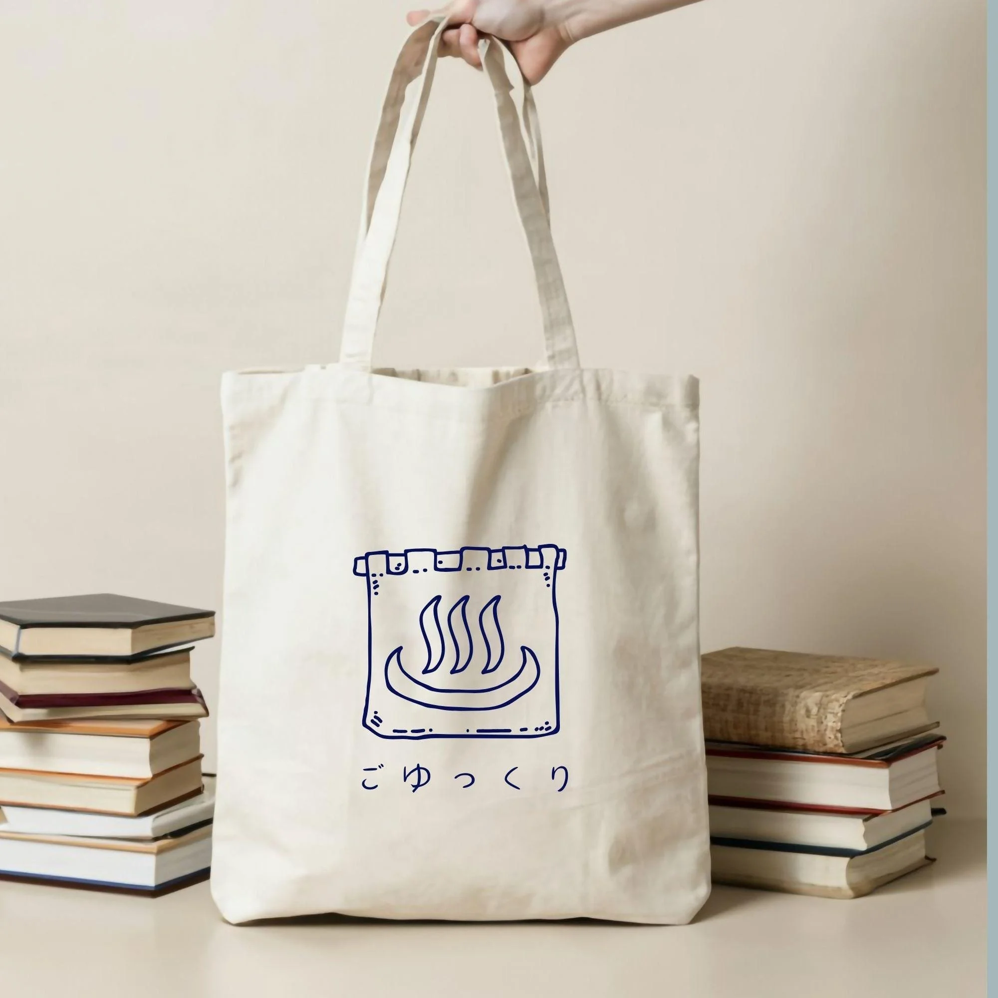 This Japanese canvas tote bag features a traditional hot spring sign design, perfect for a traveler or Japan lover. It makes a great gift with its Hiragana graphic, ideal for a Japanese friend or anyone passionate about Japanese culture.