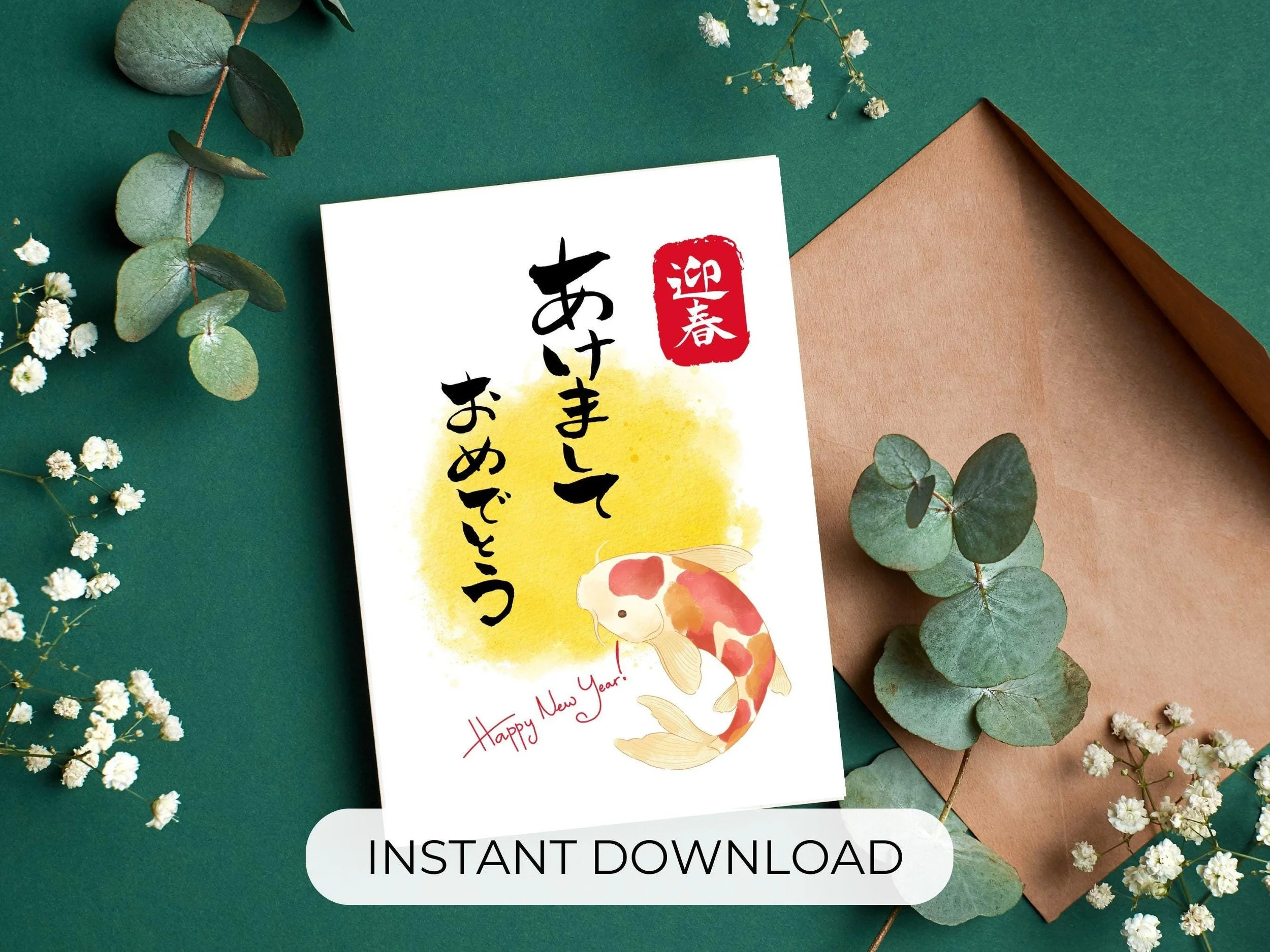 Japanese New Year Card: Koi Fish Calligraphy (Digital Download)