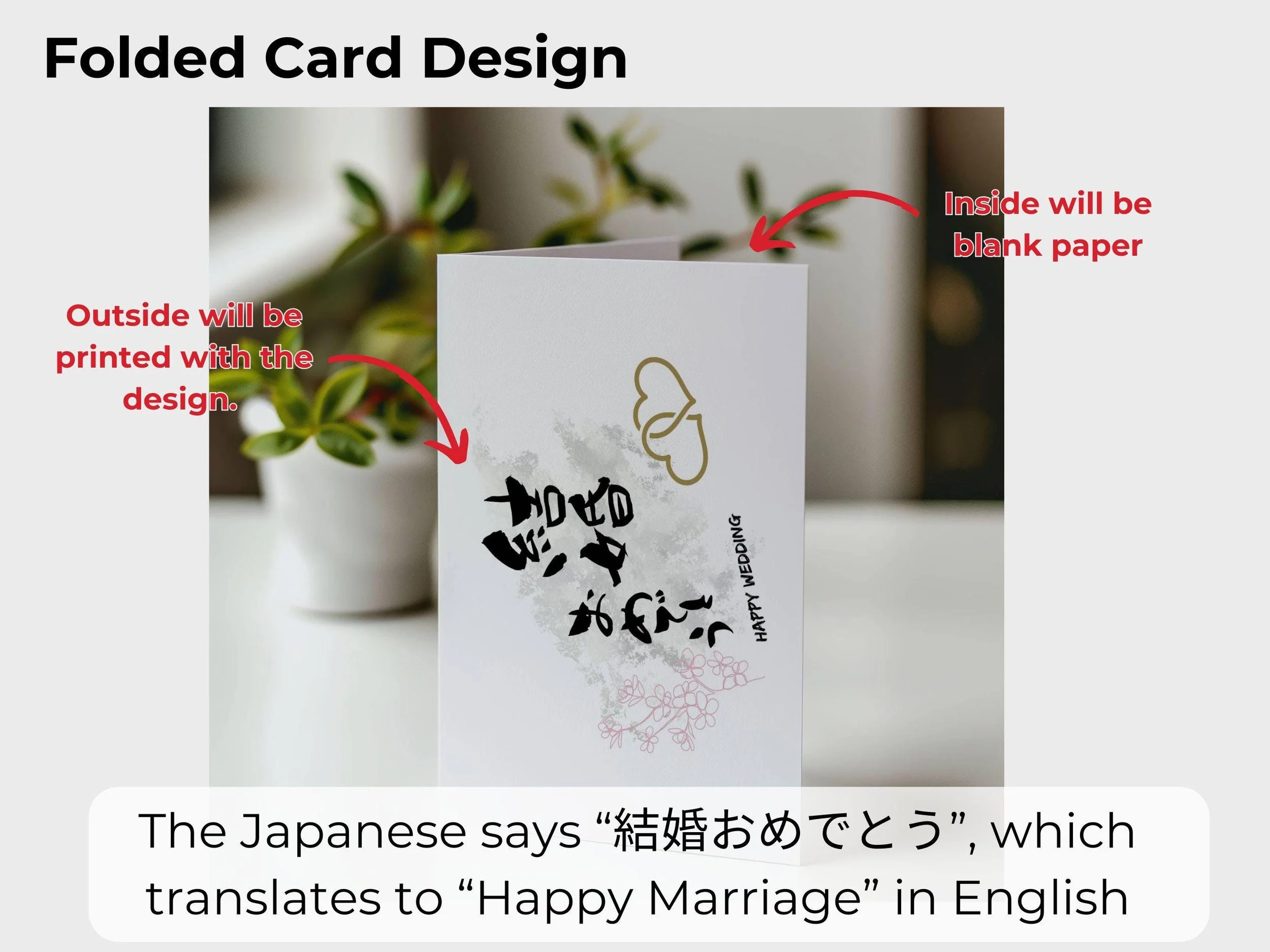 This Japanese wedding message card, also suitable for graduations, birthdays, and anniversaries, serves as a thoughtful way to convey congratulations to your Japanese friends on their special occasions. Its authentic Japanese message adds a unique touch to your greetings, making it a meaningful choice for the celebration.
