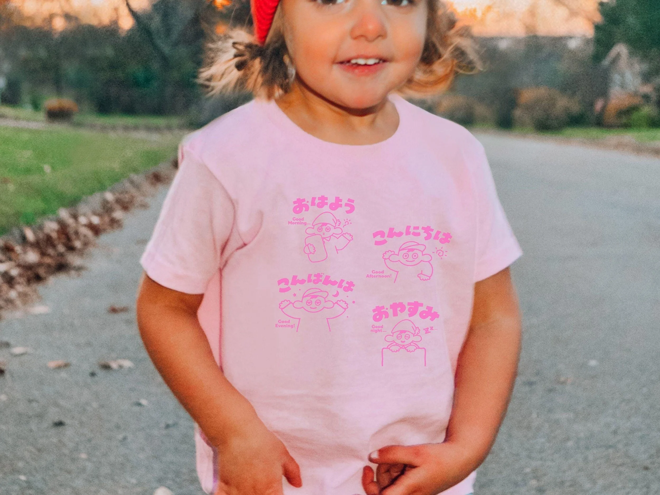 Kid's Hiragana T-Shirt Japanese Anime Tshirt Kawaii Japanese Greeting Phrase Tee Gift For Japanese Learner Shirt Birthday For Her
