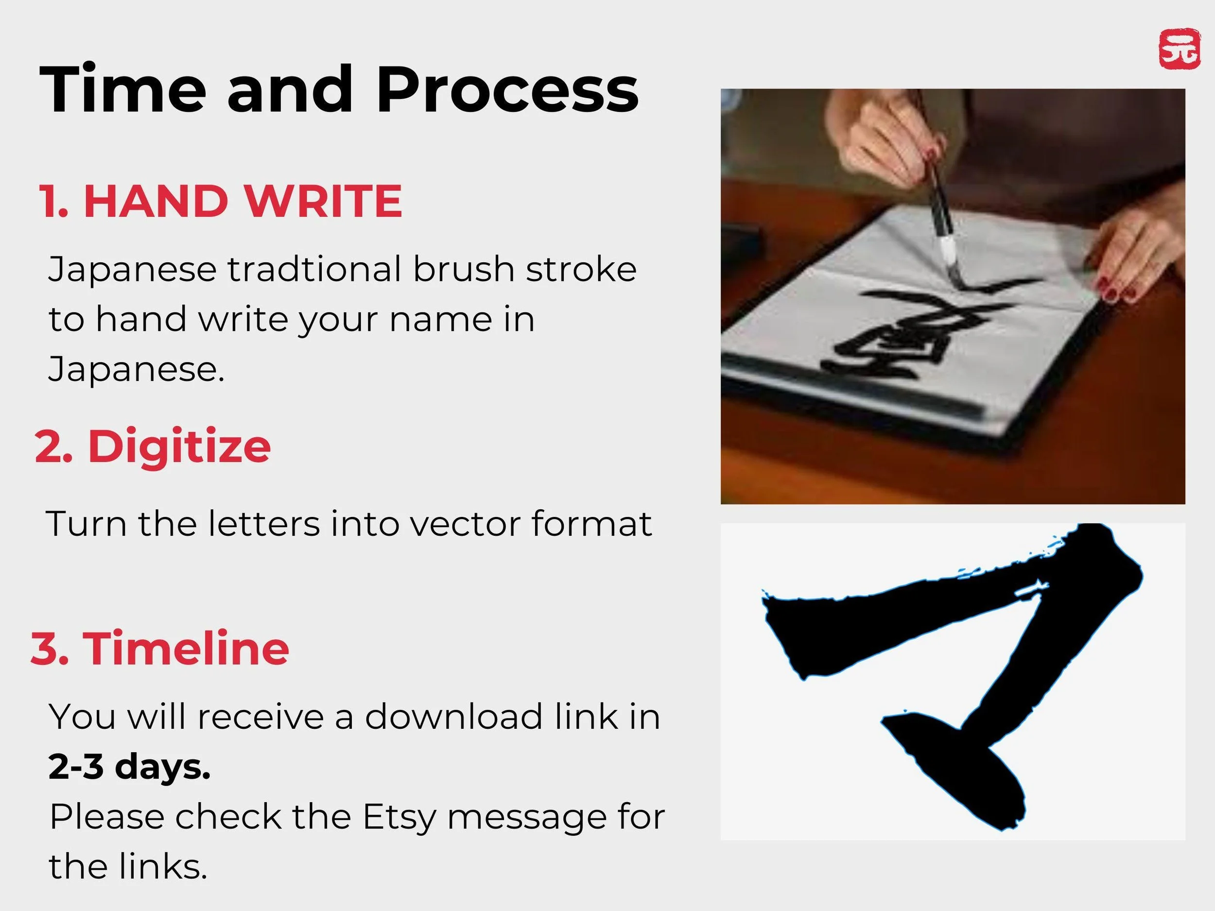 .: We will first hand write the letter with Japanese calligraphy style and will turn them into digital file.