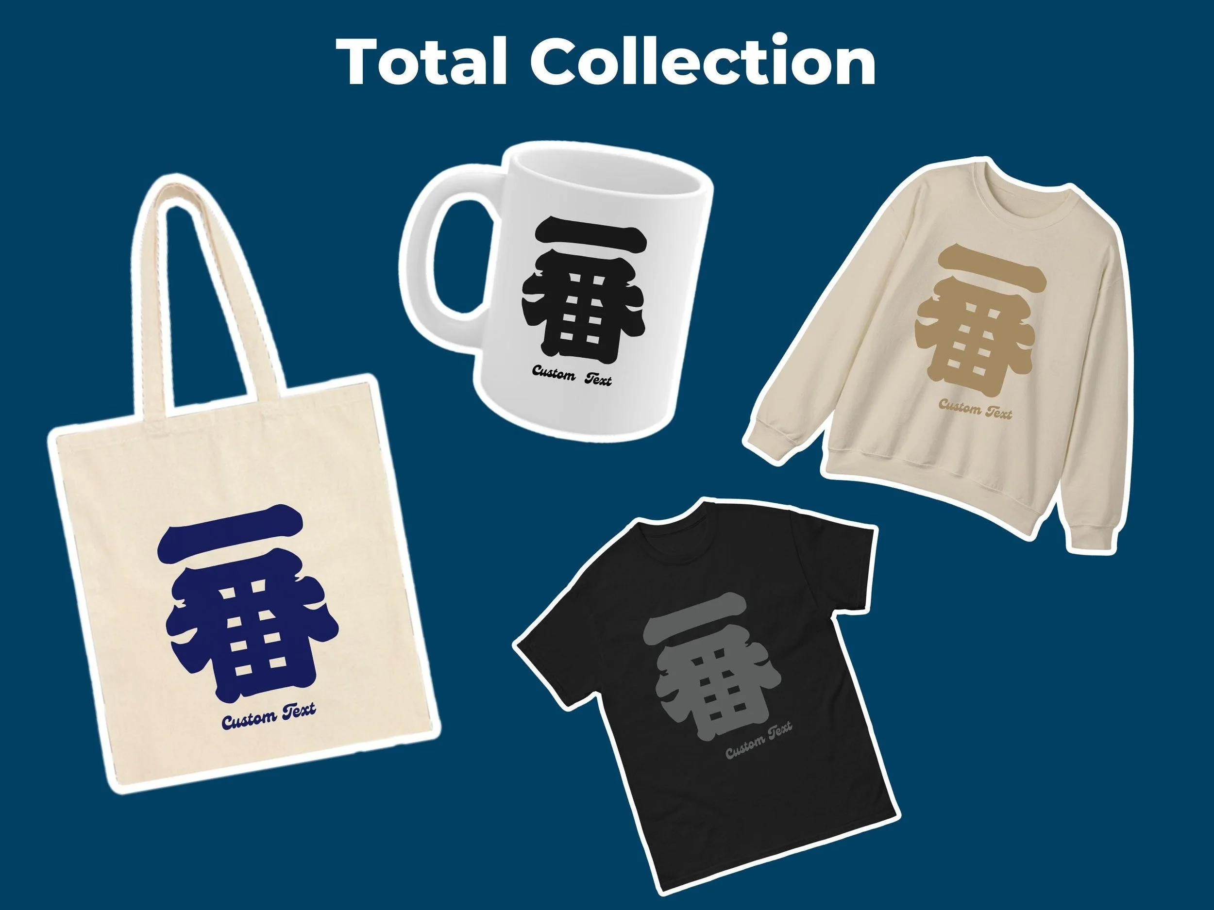 This personalized custom Text tote bag let you customize with your text or phrase for mother's Day gift or for your mom's Birthday. The Japanese Kanji says Ichiban, which means #1 in Japanese. Along with the Japanese Ichiban character, you can add your own text or phrase to praise your special Mom.