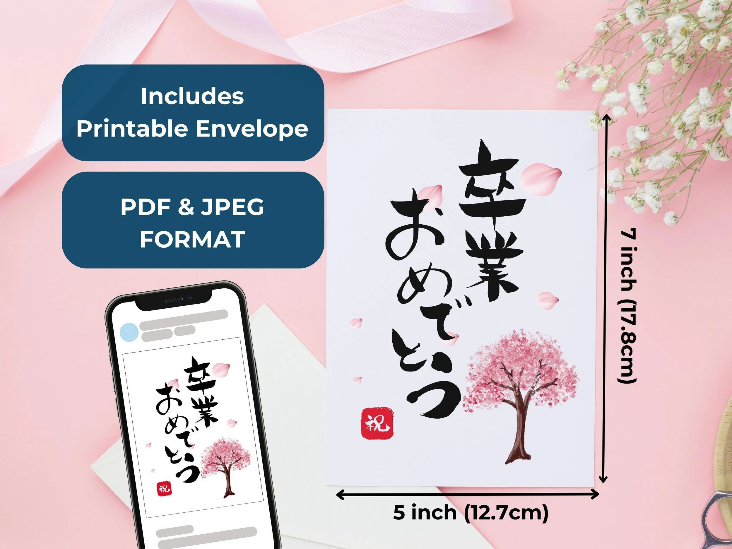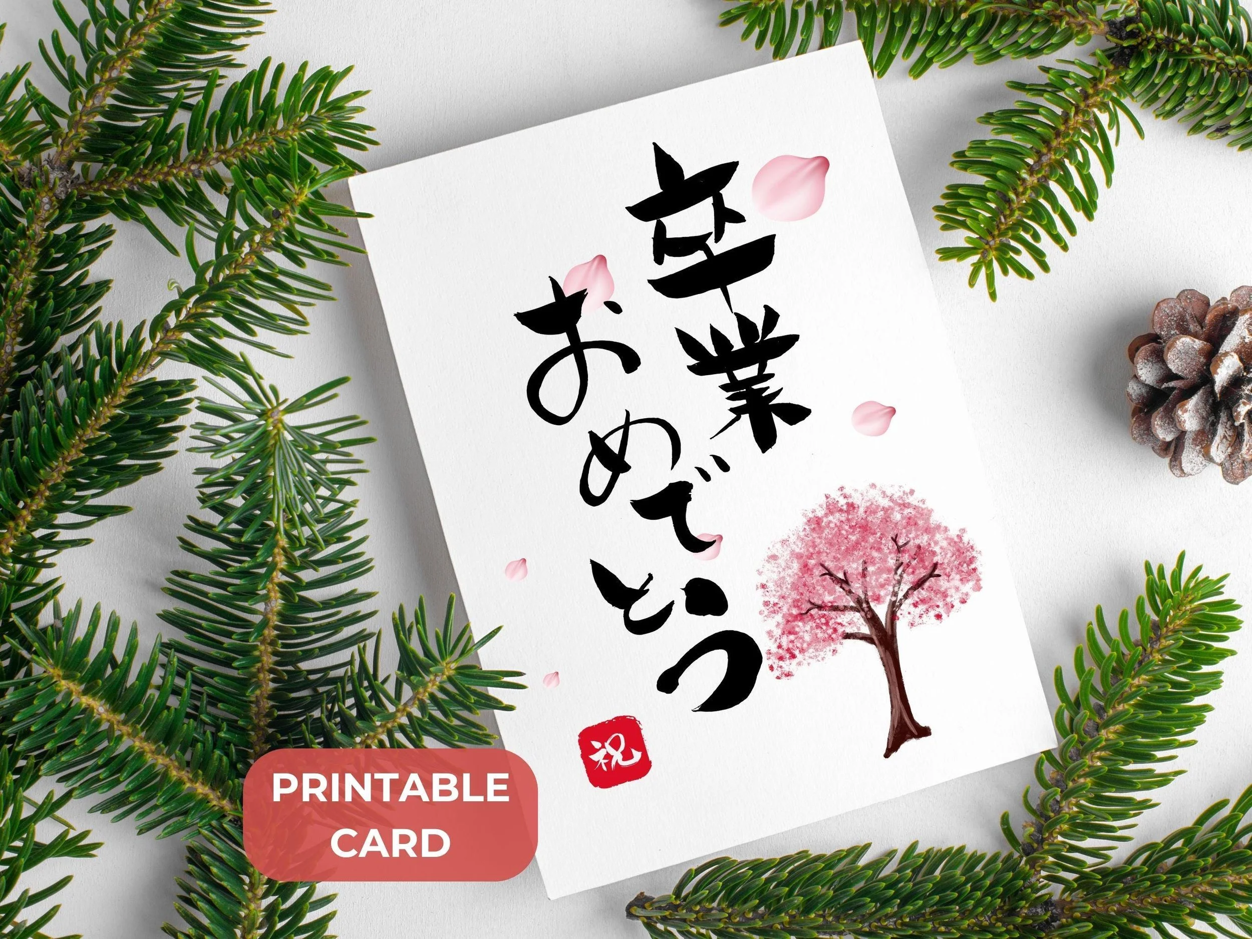 Printable Graduation Card Japanese Calligraphy Card Cherry Blossom Sakura Tree Art Message Card For Japanese Class Graduates