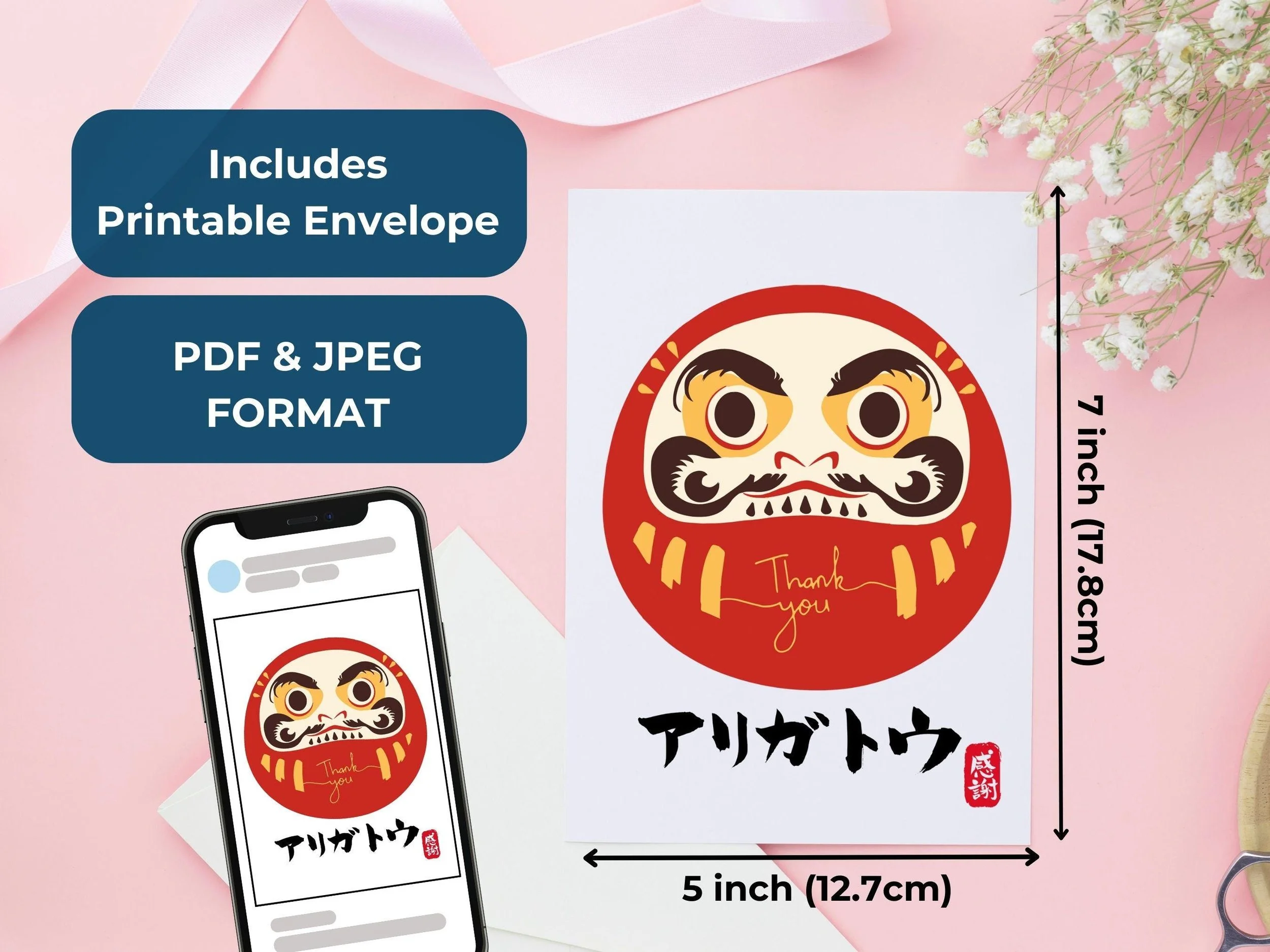 Daruma Thank you Printable Card (Digital Card)