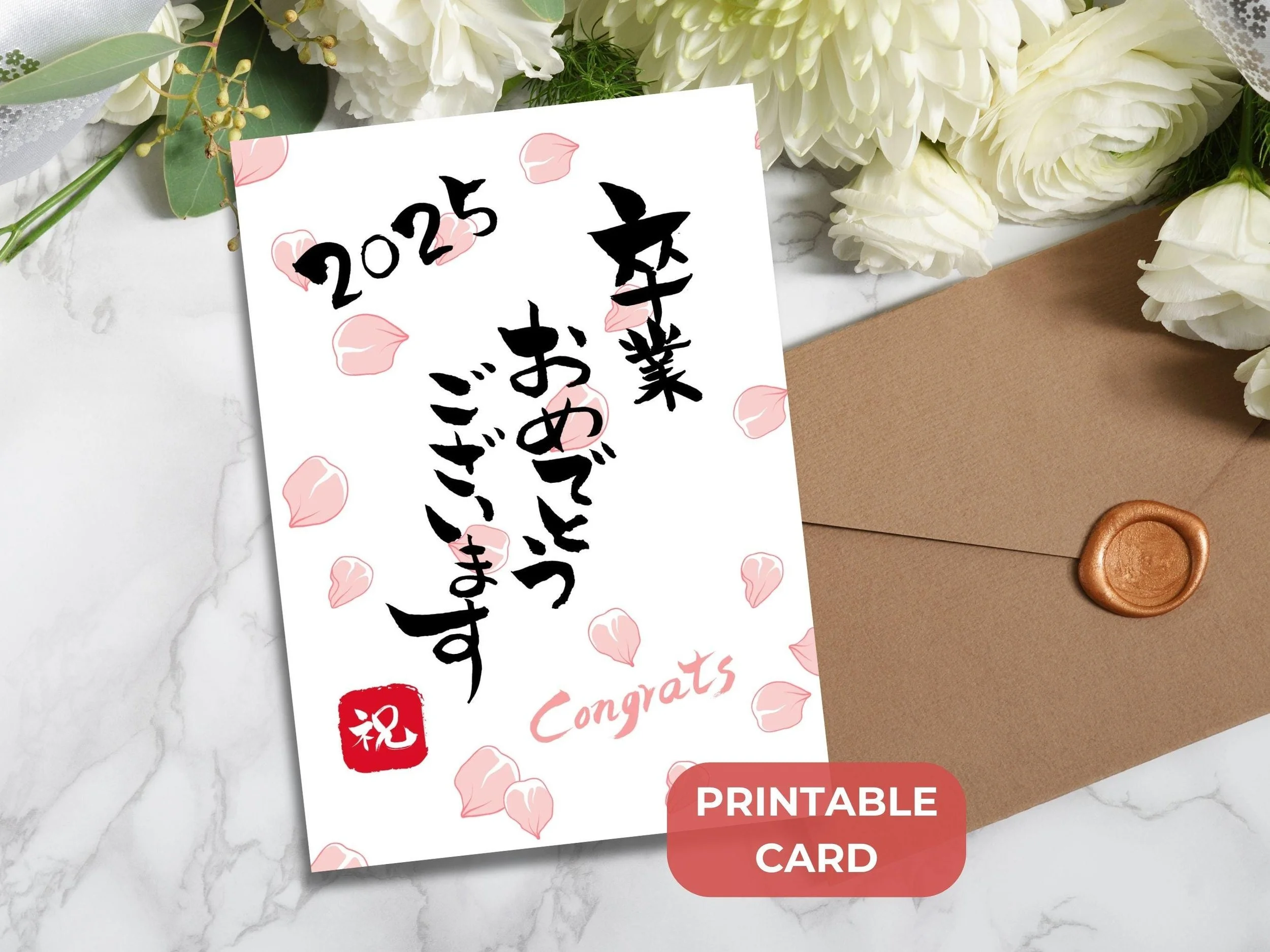 Sakura Cherry Blossom Graduation Card: Japanese Calligraphy Art (PDF)